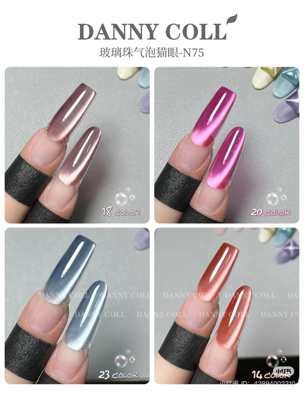 Featuring 25 dazzling shades with a unique bubble cat-eye effect, this set transforms nails into shimmering masterpieces. Perfect for creating luxurious, high-gloss looks with depth and dimension. Designed for professionals and enthusiasts to achieve salon-quality finishes effortlessly. Unleash your creativity with Danny Coll!